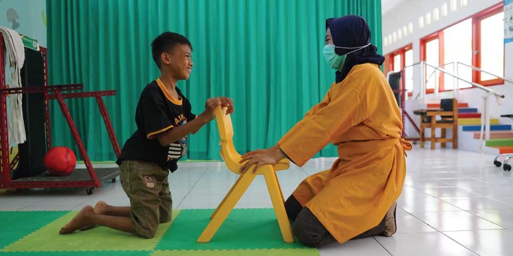 Rehabilitatie staat bij ons centraal en bestaat uit fysiotherapie, ergotherapie en logopedie. We richten ons op het geven van 11.000+ therapiesessies voor gemiddeld 175 kinderen per jaar. Helaas is de steun die we krijgen van de overheid zowel zeer beperkt als onzeker.